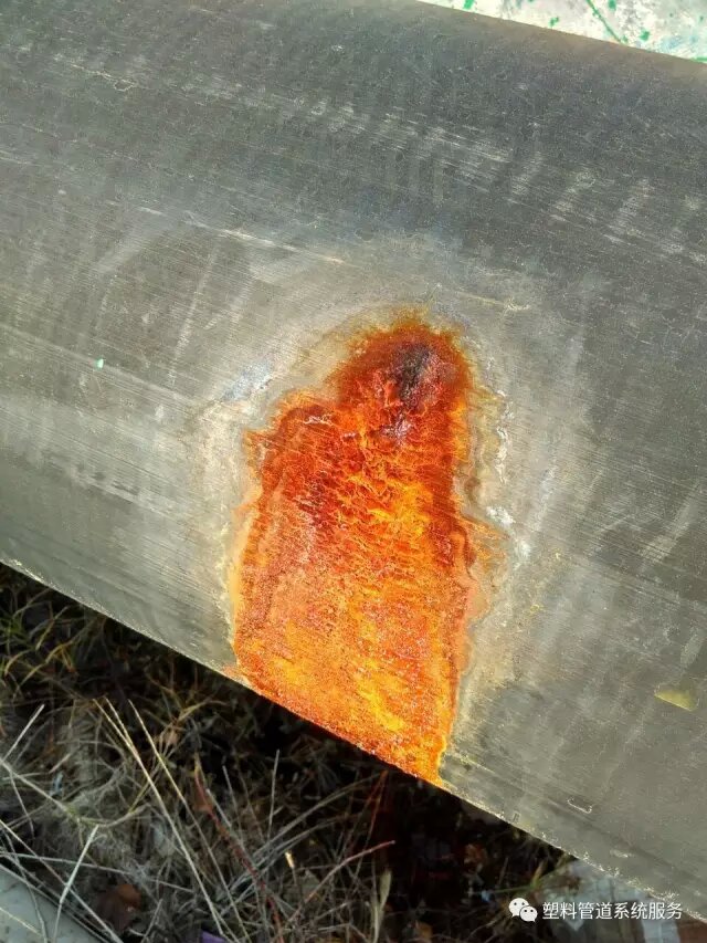 如果安裝不規範(fàn)、產品質量不過(guò)硬,好產品也有它自身缺(quē)點,鋼絲網骨架PE複合管電熔焊接,管道端(duān)麵裸漏在水中,管道內(nèi)金屬絲和水接觸遇水腐蝕,可怕啊!看看下圖(tú),讓(ràng)你呈啞口!